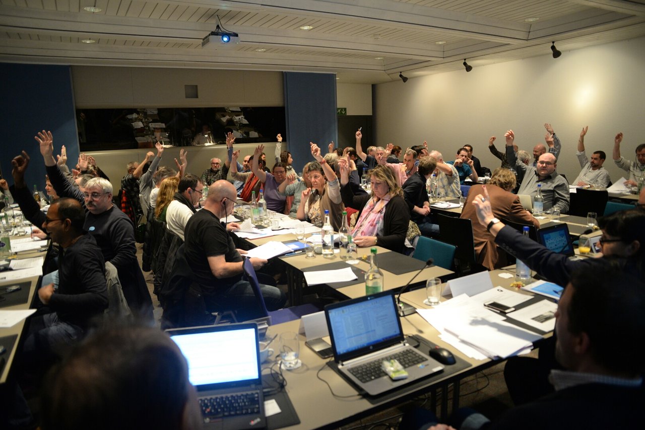 Die Firmenkonferenz Swisscom Group der Gewerkschaft syndicom vom Freitag hat eine Resolution für eine digitale Schweiz mit sozialer Verantwortung verabschiedet, die 15 Punkte enthält. Eine zentrale Forderung ist, dass die Gewerkschaften bei den Entscheiden von Politik und Wirtschaft einbezogen werden. Denn die Beschäftigten sind durch die Veränderungen der Arbeitsprozesse am stärksten von der Digitalisierung betroffen. Eine erfolgreiche digitale Transformation der Schweizer Unternehmen erfordert deshalb zwingend den Einbezug der Beschäftigen und ihrer Gewerkschaften.